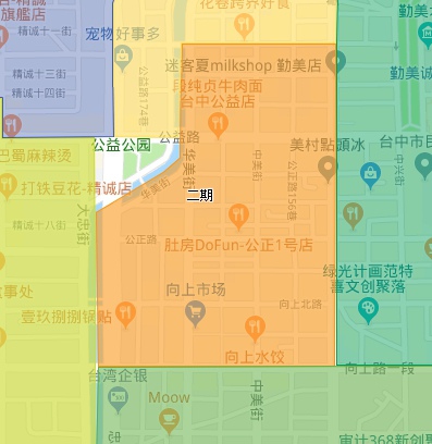 機能便利的2期舊市區生活圈,一至五期重劃區於104年第四次重新通盤檢討,106年6月生效。